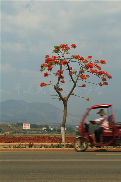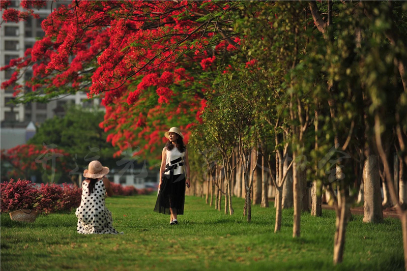 蓝花楹悄然而去,火凤凰接踵而来,浪漫小城逐渐渲染成了热情之城。“叶如飞凰之羽,花如丹凤之冠。”凤凰花的婀娜身姿,让人禁不住赋予它这样的佳句。